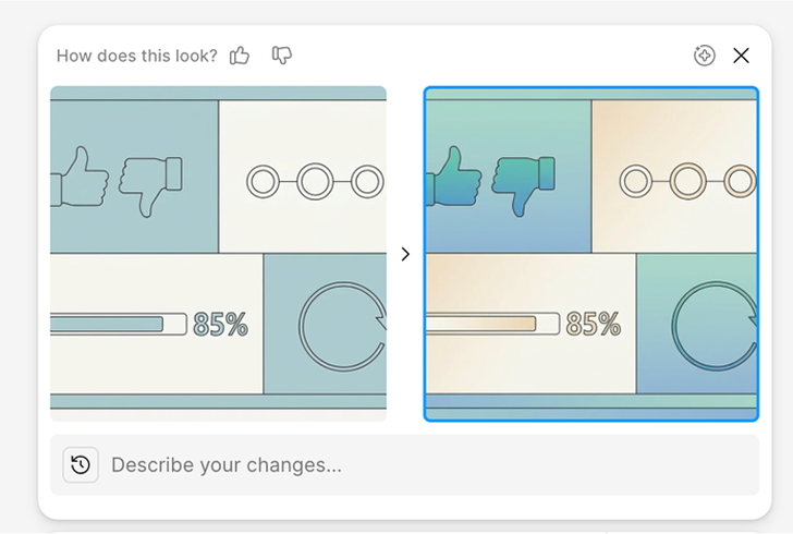 הראשון הוא Fine tuning: ב-Midjourney, אחרי שה-AI מייצר 4 אפשרויות, כפתורי V (וריאציה) ו-U(שדרוג) נותנים שליטה מדויקת על הכיוון, בלי לכתוב prompt מאפס. ב-AI Figma אפשר לבקש וריאציות על עיצוב שנוצר ולהשוות בין גרסאות זו לצד זו.